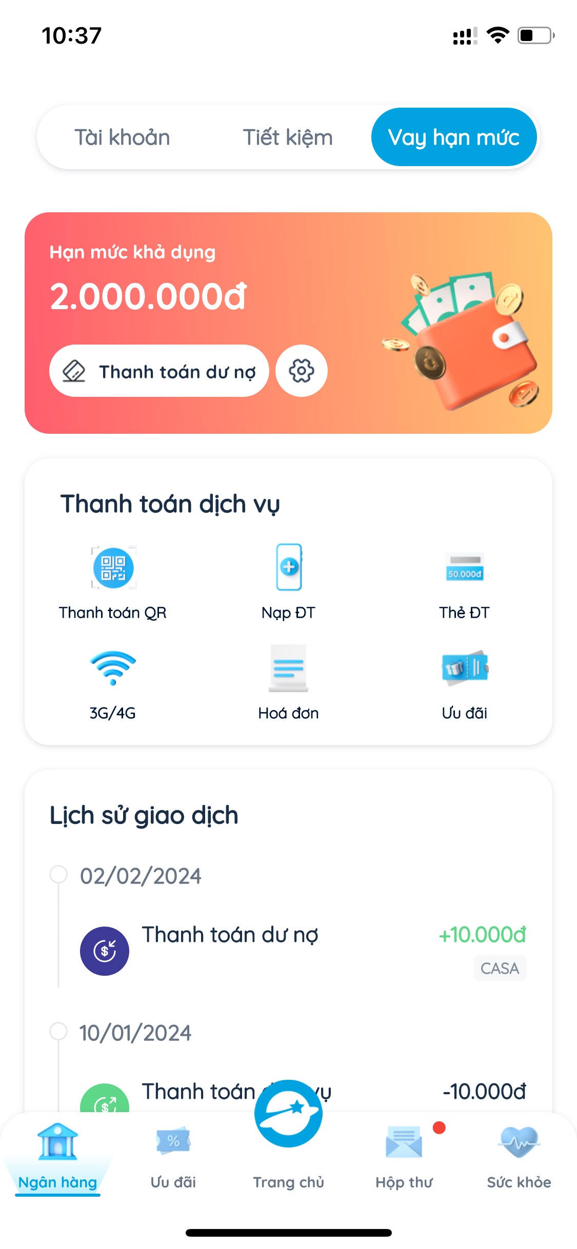 Bước 4: Nếu được cấp hạn mức thì ví sẽ hiển thị số dư như này và bạn có thể rút về tài khoản ngân hàng bằng dịch vụ tại rutvts.com